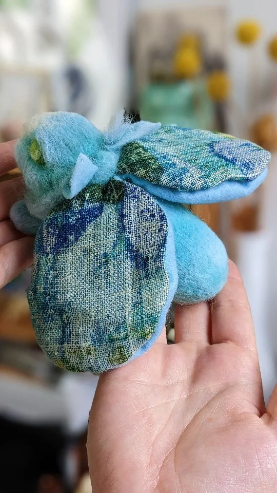 I am a queer multidisciplinary artist working in fiber and illustration, practices that, while different in process, are united by common themes of transformation, perception and identity. My fiber practice is rooted in felting, a process that transforms raw wool through various kinds of agitation. Creating soft sculptures, I explore how our identities are shaped by personal and collective experiences, social constructs, perception, and connection. My illustration practice expands on that using narrative imagery to depict original folklore, hybridity, and identity, often blending the playful and the macabre to illuminate the complexities of belonging.